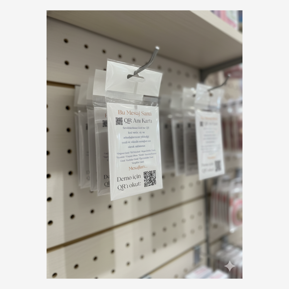 ⭐ Satışa hazır QR Mesaj/Video Kartı (askılı poşette)