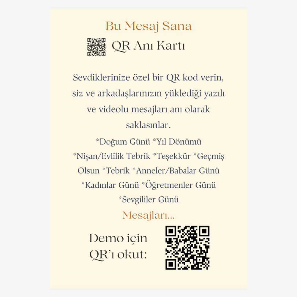 Bu Mesaj Sana QR Kartları ile hediyelerinize duygusal değer katın, müşteri memnuniyetinizi artırın ve işletmeniz için yeni bir gelir modeli yaratın.