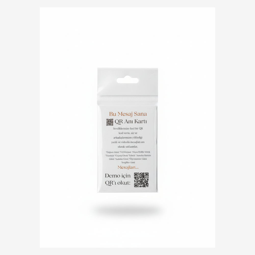 ⭐ Satışa hazır QR Mesaj/Video Kartı (askılı poşette)